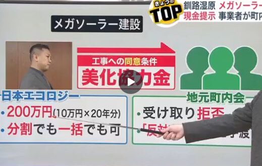 釧路湿原周辺のメガソーラー問題・金で買収工作?