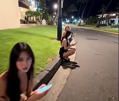 ハワイ・ホノルルの夜の街路で露出度の高いアジア系女性たち…