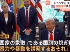 トランプ大統領は、「国旗への冒とく行為」をした人物の訴追を司法省に求める大統領令に署名。