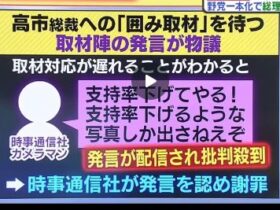 高市早苗総裁の会見前「支持率下げてやる」、「支持率が下がるような写真しか出さねえぞ」の発言について「正義のミカタ」で偏向報道が続けられてきたメディアについて話し合われました。