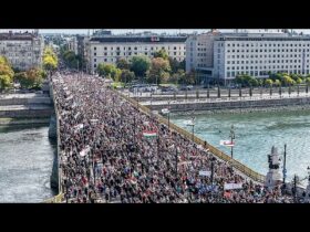 ハンガリー・ブタペストで、「平和行進」に20万人が集結「私たちはウクライナのために死にたくない」と横断幕が掲げらました。