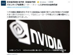 【警鐘】パランティア創業者ピーター・ティール氏がNVIDIA全株売却。11月19日に決算発表を予定するNVIDIAの業績次第では株式相場は大暴落も!