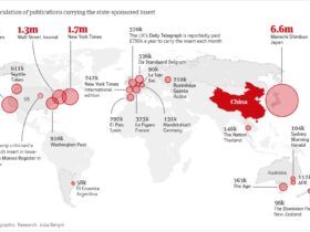 イギリス・ガーディアン紙が発表した「中国政府が資金提供するインサートを掲載している出版物の発行部数」そのトップが・・・やはり、日本でした。