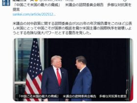 「中国こそ米国の最大の脅威」米議会の対中政策に関する諮問委員会が、2025年の年次報告書を公表し、アメリカにとって中国こそが国家の根底を脅かす、米国主導の国際秩序を破壊しようとする危険な強大パワーだとする警告を発しました…