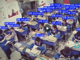 中国の深圳南方安創科技(監視製品・製造企業)が公開した監視ビデオでは、学生の顔認識と信頼度表示(信用スコア)が映し出されています。