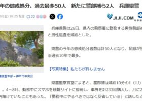 兵庫県警の今年の懲戒処分者数は計50人となり、記録が残る過去10年で最多。