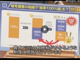 財務大臣が暗号資産の税率110%問題について国会で言及。 暗号資産譲渡益が雑所得として最高55%課税され、相続税との重複で高額利益時に100%超負担が生じうる問題。 相続税55% + 所得税45% + 住民税10… -