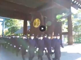 1962年から続く、防衛大学校生有志の毎年恒例「東京行進」。戦没者追悼を目的とし、学生たちの規律正しい隊列と参拝者の拍手が、秋の紅葉の中で厳粛な雰囲気を醸し出しています。