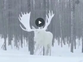北米の森林で撮影された白いヘラジカの動画は、リューシズム(白変種)によるもので、アルビノやAI生成ではなく、稀有な遺伝的変異(約…