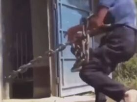 こんなチェーンに繋がれた動物って・・・😱